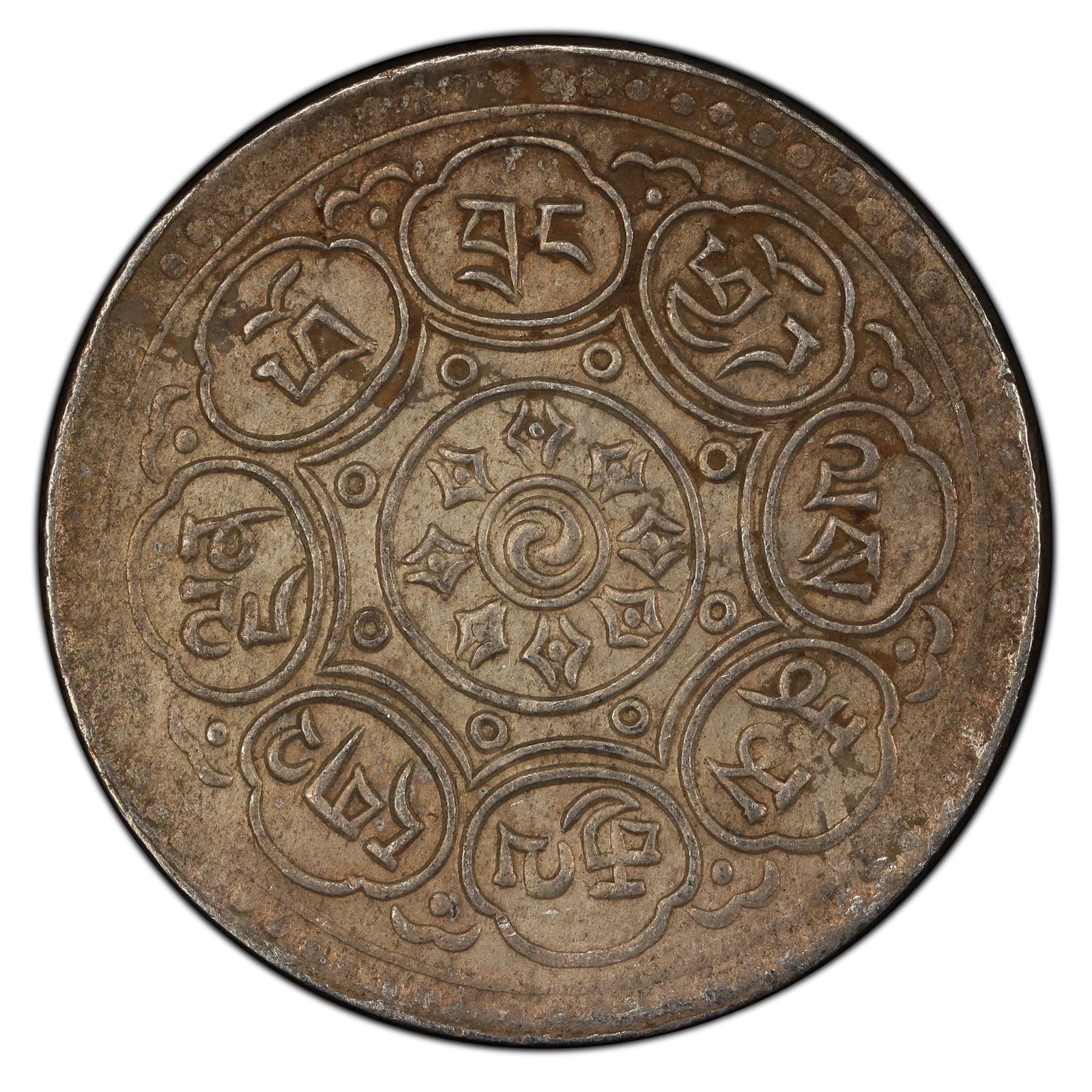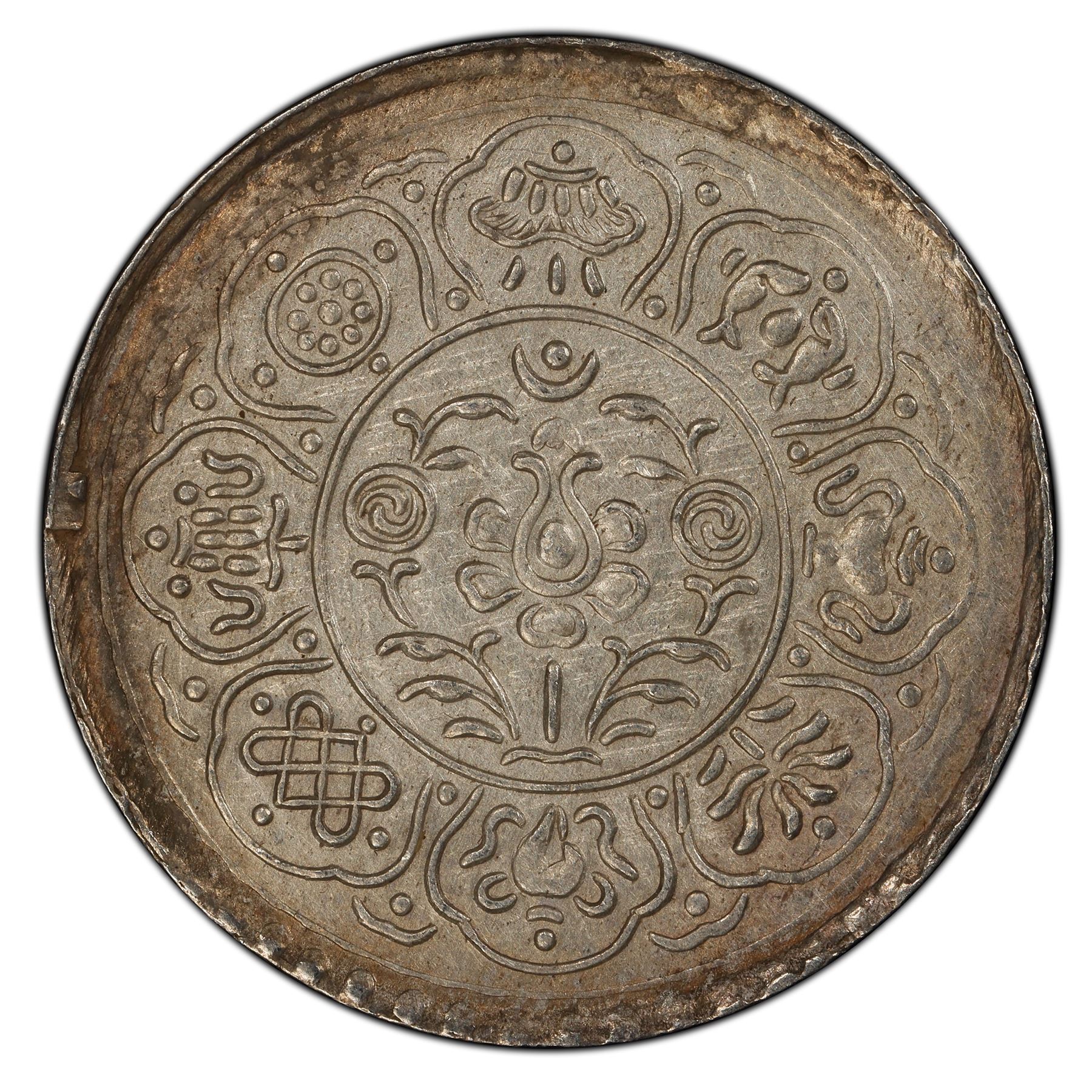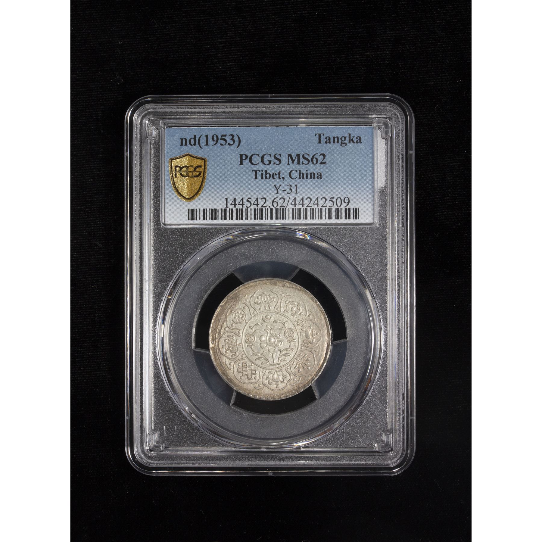 TIBET: AR tangka dkarpo sa rpa, ND (1953), Y-31, Second Monk issue, an attractive mint state example, PCGS graded MS62. Formerly it was assumed that these tangkas were distributed to monks on behalf of the 14th Dalai Lama in the late 1940s. The Tibetans referred to this Tangka as Tangka dkarpo sa rpa ("new white tangka") in order to distinguish it from the normal ga-den tangkas. This coin circulated for some time at the value of 5 srang, which shows the high inflation rate which was prevailing in Tibet in the 20th Century. In the 19th Century 6½ tangkas were equivalent to 1 srang which corresponded to slightly more than 37 grams of silver. Taking the circulating value of this "Monk" tangka as a base, 1 srang was equal to about 33½ tangkas in 1953-54.