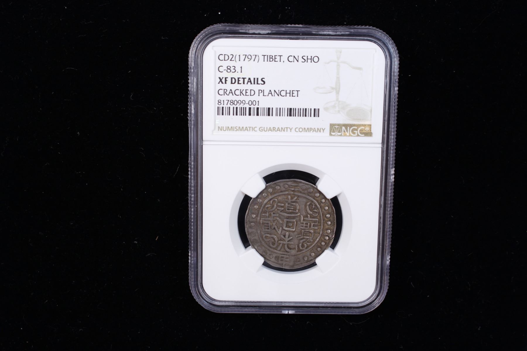 TIBET: Dao Guang, 1820-1850, AR sho, year 2 (1822), Cr-93, L&M-648A, Sino-Tibetan series, zang incomplete variety, cracked planchet, NGC graded XF details.