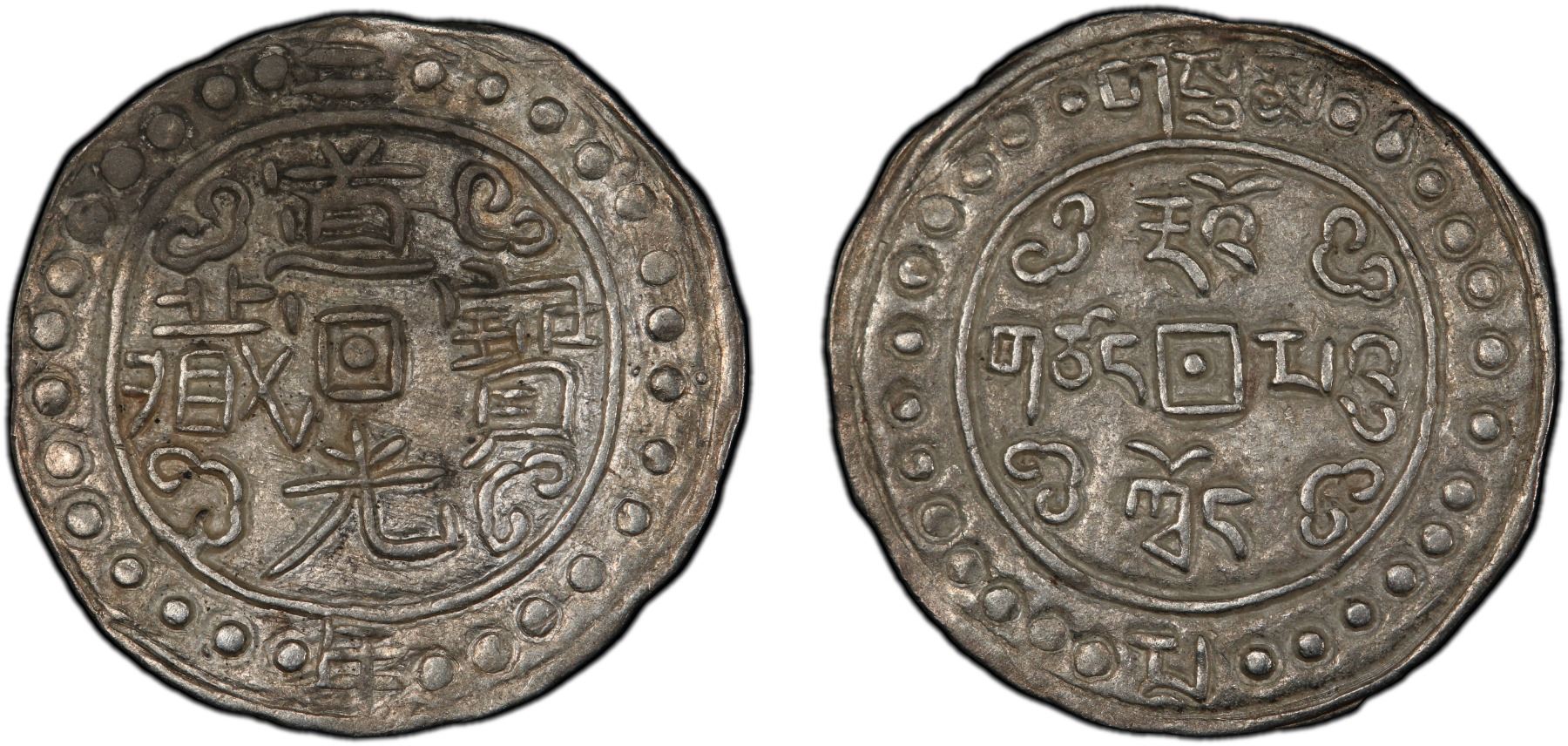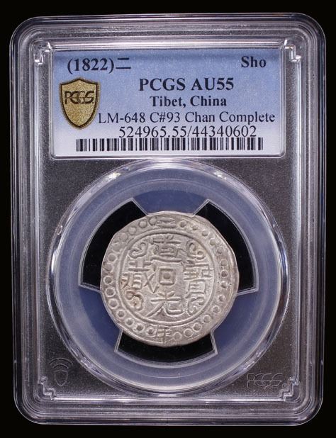 TIBET: Dao Guang, 1820-1850, AR sho, year 2 (1822), Cr-93, L&M-648, Sino-Tibetan issue, variety with zang complete, lightly lustrous, an excellent example for this well-sought-after type, PCGS graded AU55.