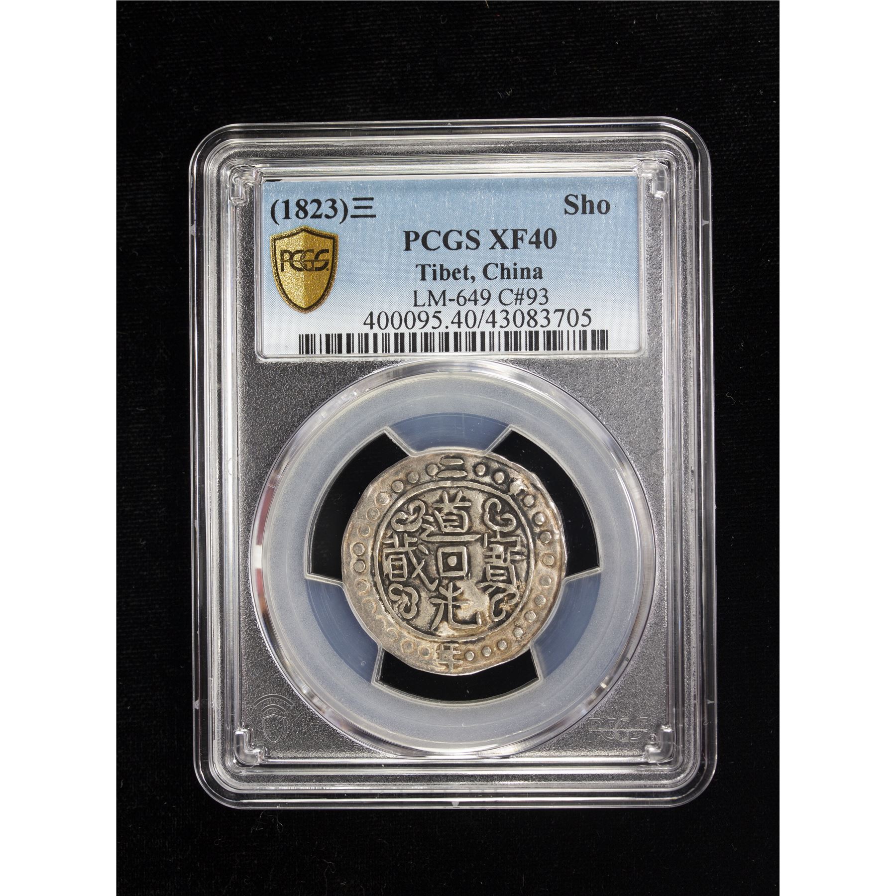 TIBET: Dao Guang, 1820-1850, AR sho, year 2 (1822), Cr-93, L&M-649, PCGS graded EF40. With incorrect date on PCGS holder.