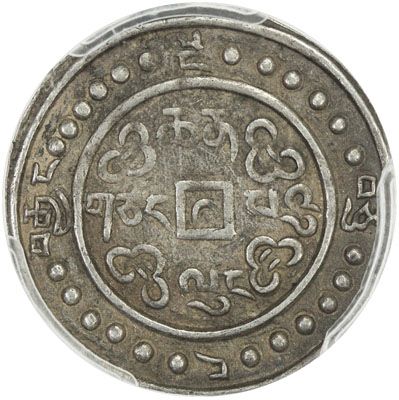 TIBET: Qian Long, 1736-1795, AR 1/2 tangka (3/4 sho), year 58 (1793), Cr-66.1, LM-638A, 24 beads in margin, both sides, very rare denomination, PCGS graded EF40.