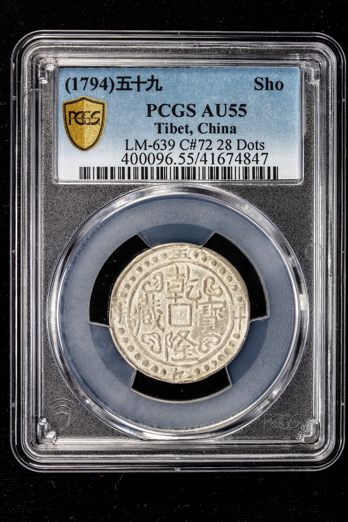 TIBET: Qian Long, 1736-1795, AR sho, year 59 (1794), Cr-72, L&M-639, 25 dots variety, PCGS graded AU55.