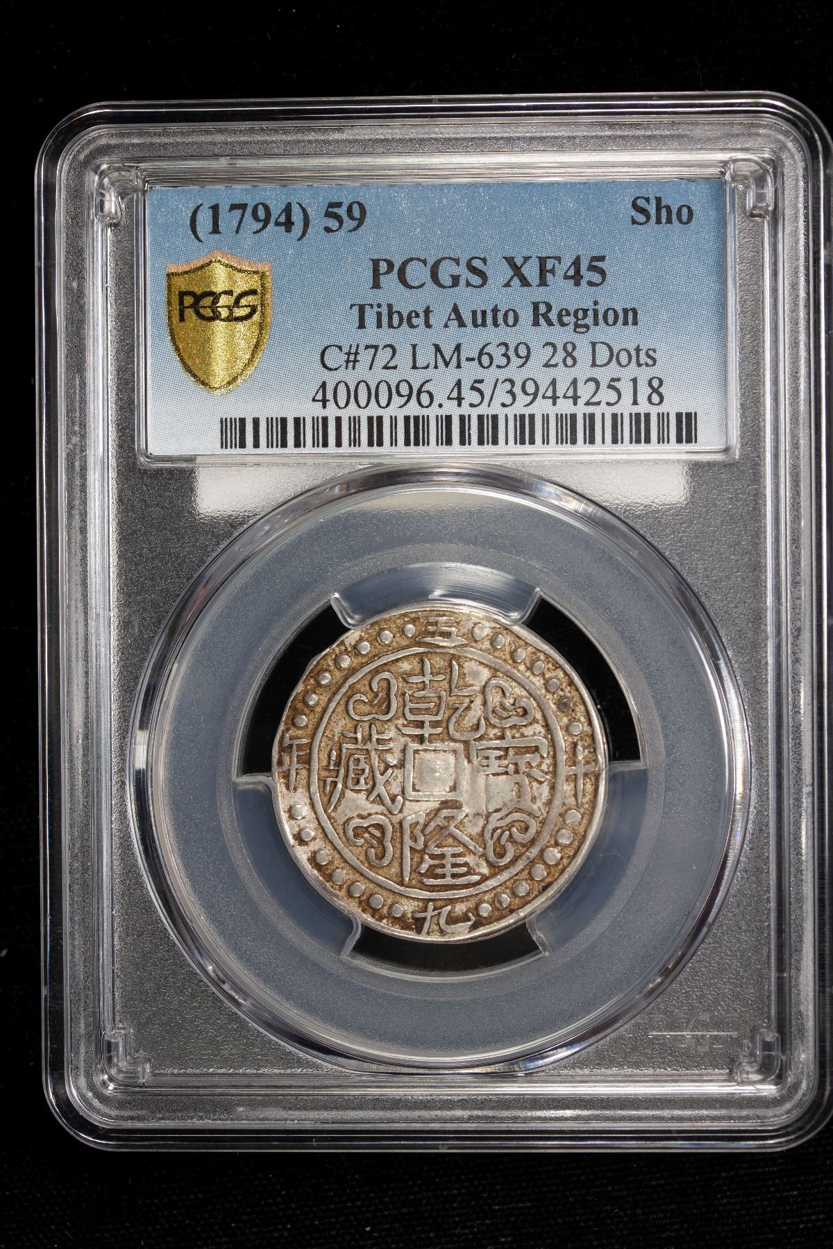 TIBET: Qian Long, 1736-1795, AR sho, year 59 (1794), Cr-72, L&M-639, 28-dot variety, PCGS graded EF45.