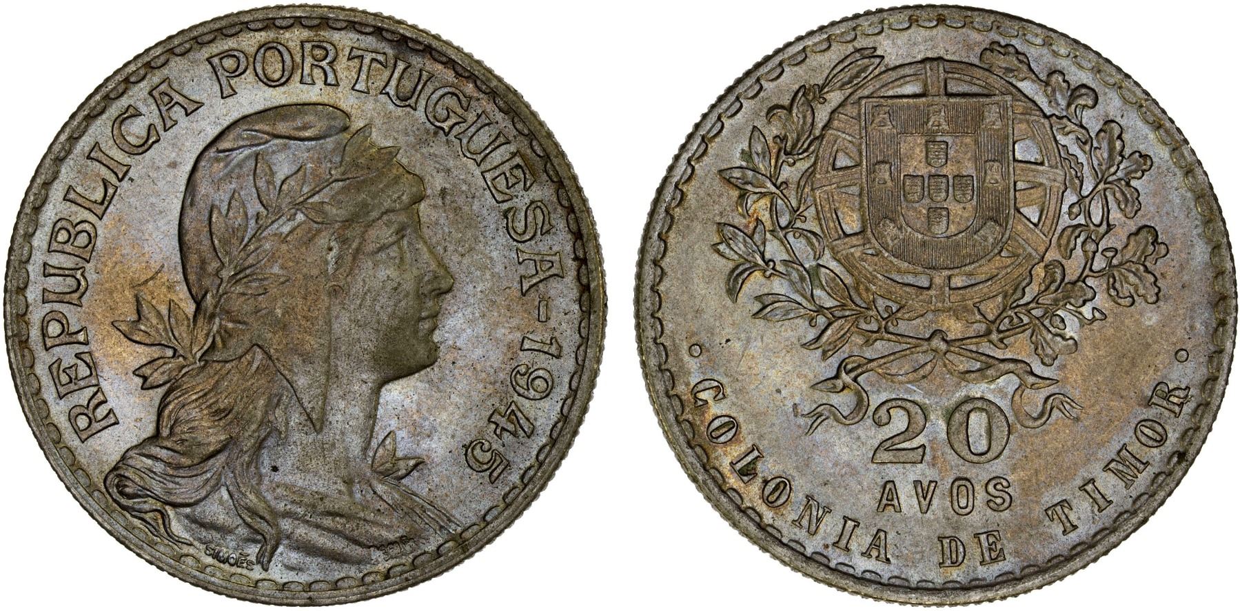 TIMOR: Portuguese Colony, 20 avos, 1945, KM-6, a wonderful lustrous example, Brilliant UNC.