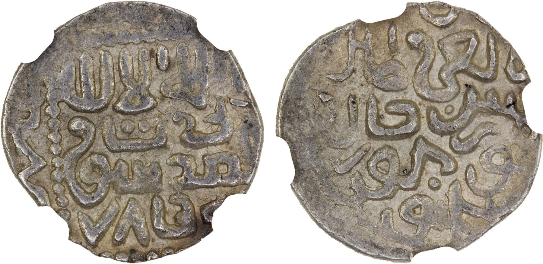TIMURID: Timur, 1370-1405, AR dirham ("miri"), Samarqand, AH785, A-2375, full bold date, NGC graded AU55.