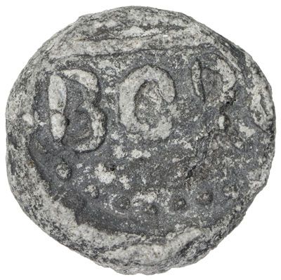 TRANQUEBAR: Christian IV, 1620-1648, lead kas (3.87g), ND, KM-23, Gray-20, Jensen-28, DANS / BORG // NY / BE, with NY for NIS, with separating line between text on both sides, probably for the town of Nibe in the Jutland peninsula, About VF, RR, ex Dr. John Lund Collection.