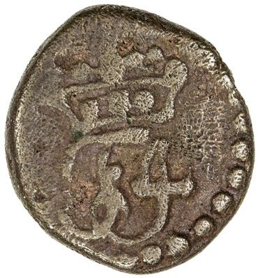 TRANQUEBAR: Frederik IV, 1699-1730, AE kas (0.76g), ND, KM-124, Gray-119, Jensen-209, crowned F4 with two vertical stems // crowned DOC monogram, well-centered, About VF, S, ex Dr. John Lund Collection.