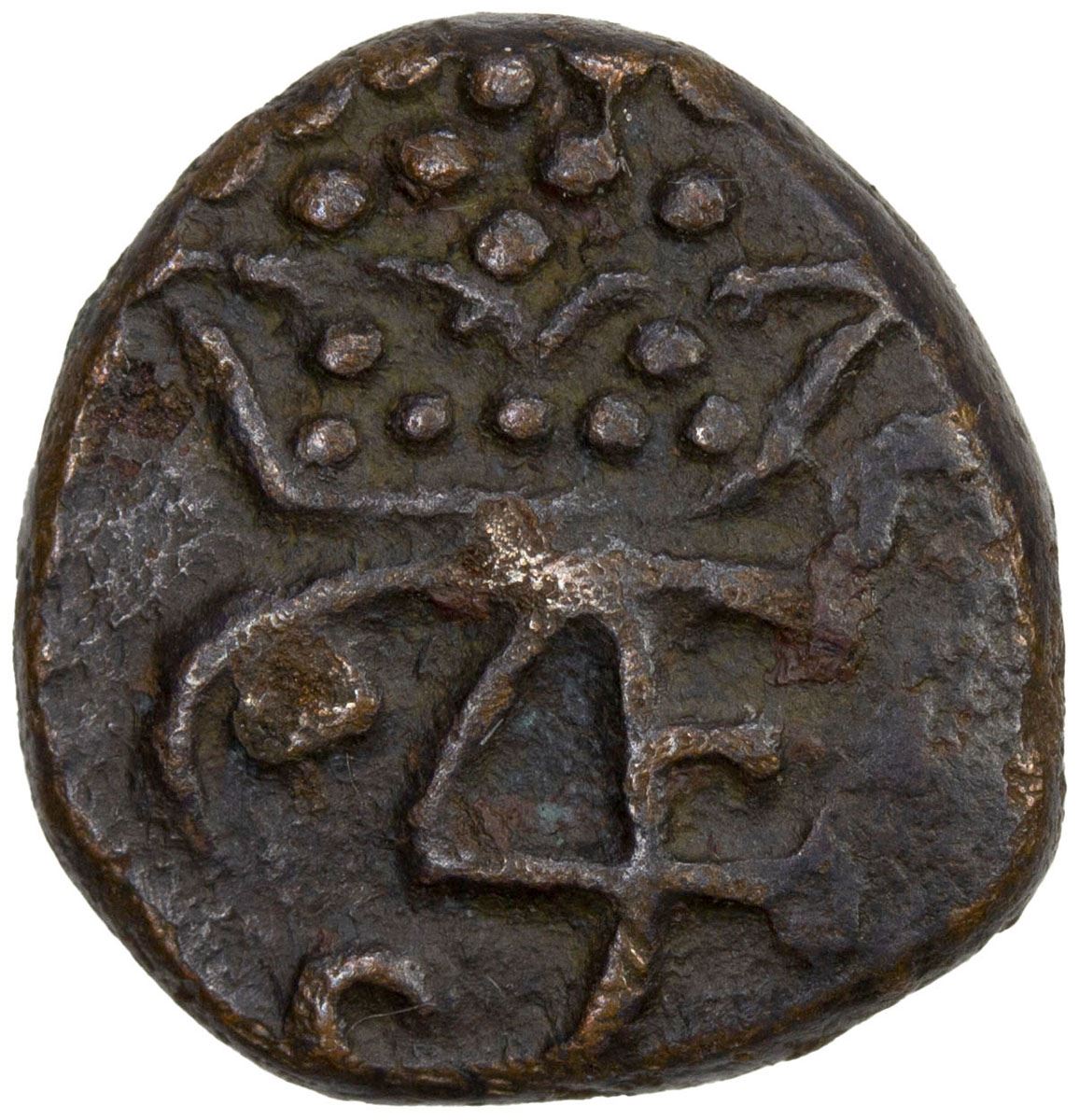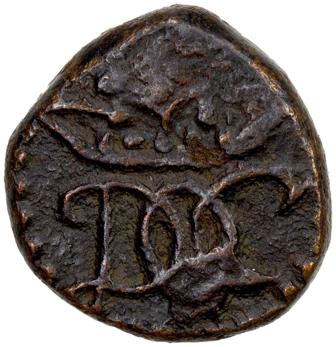 TRANQUEBAR: Frederik IV, 1699-1730, AE kas (1.1g), ND, KM-122, Gray-119, Jensen-209, crowned F4 with two vertical stems // crowned DOC monogram, VF-EF.