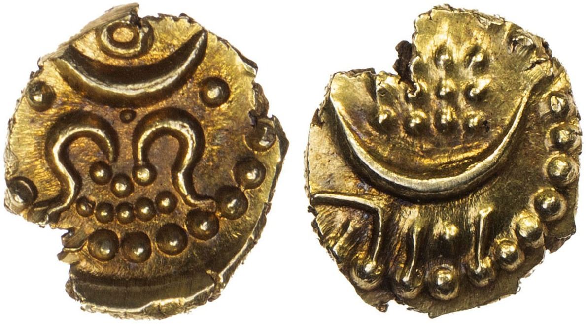 TRAVANCORE: Bala Rama Varma I, 1798-1810, AV anantaraya (fanam) (0.36g), KM-2, excellent strike, choice Unc, RR. Sarasan has assigned type KM-2 to the previous ruler Thirunal Rama Varma (1758-1798) (her type #171).