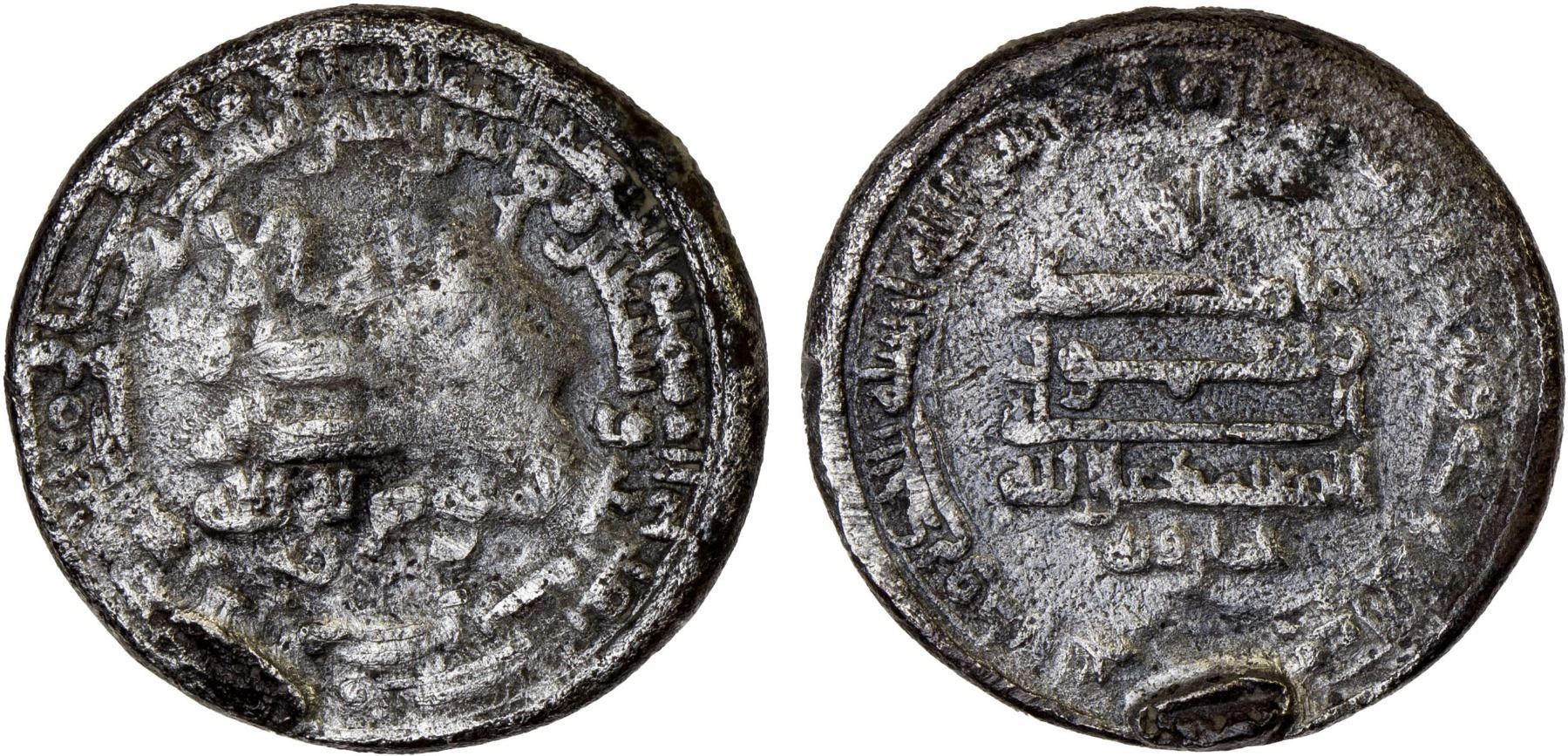 TULUNID: Khumarawayh, 884-896, AR donative dirham (2.61g), Misr, AH276, A-665E, legends identical to the normal dirham of Khumarawayh (A-655 with the Abbasid heir al-Mufawwad); mount removed, Fine, R.