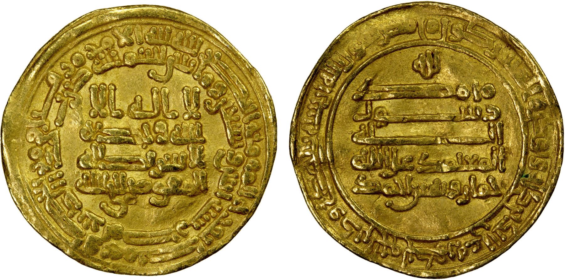 TULUNID: Khumarawayh, 884-896, AV dinar (4.12g), Misr, AH272, A-664.1, citing the Abbasid western caliphal heir apparent al-Mufawwad; slightly wavy surfaces, VF.