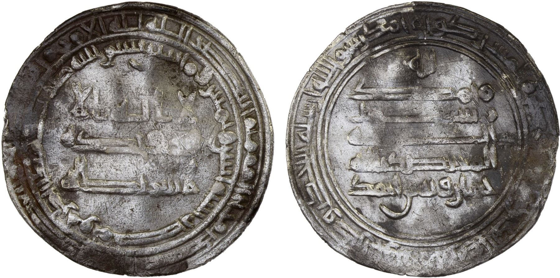 TULUNID: Khumarawayh b. Ahmad, 884-896, AR dirham (2.77g), Misr, AH282, A-665, slight weakness in the centers and some light adhesions in the margins; bold mint & date, VF, R.