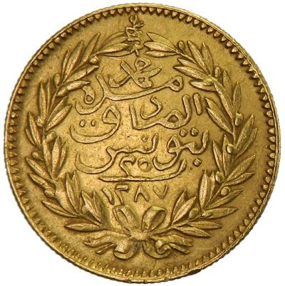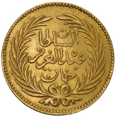 TUNIS: Abdul Aziz + Muhammad al-Sadiq Bey, 1860-1876, AV 25 piastres, Tunis, AH1287