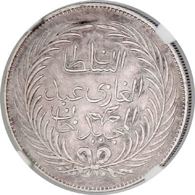 TUNIS: Abdul Mejid + Muhammad Bey, 1856-1859, AR 4 piastres, Tunis, AH1272, KM-120, spot removals, NGC graded EF details, RR.