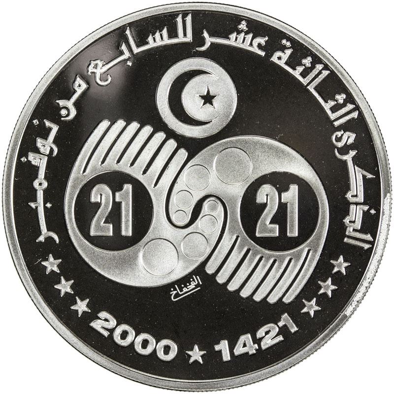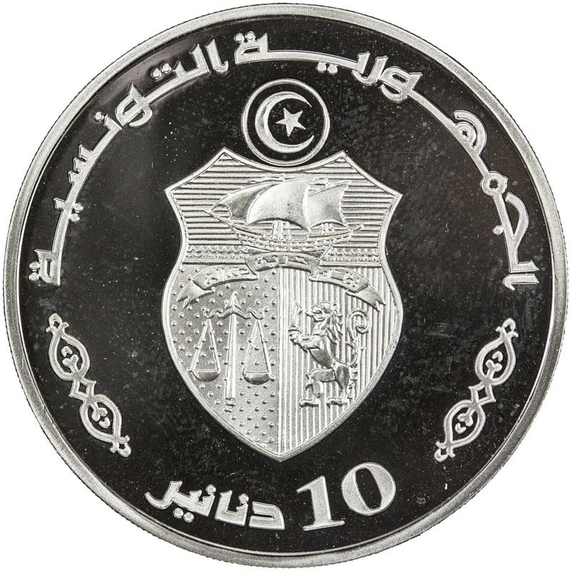 TUNISIA: AR 10 dinars, 2000//AH1421, KM-429, 13th Anniversary of the 7th November: national arms // symbol honoring the 21st century, Proof.
