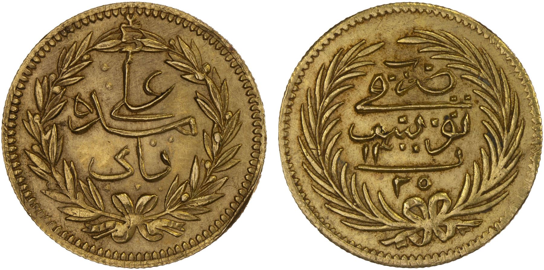 TUNISIA: 'Ali Bey, 1882-1902, AV 25 piastres, Tunis, AH1300 (1882), XF-AU