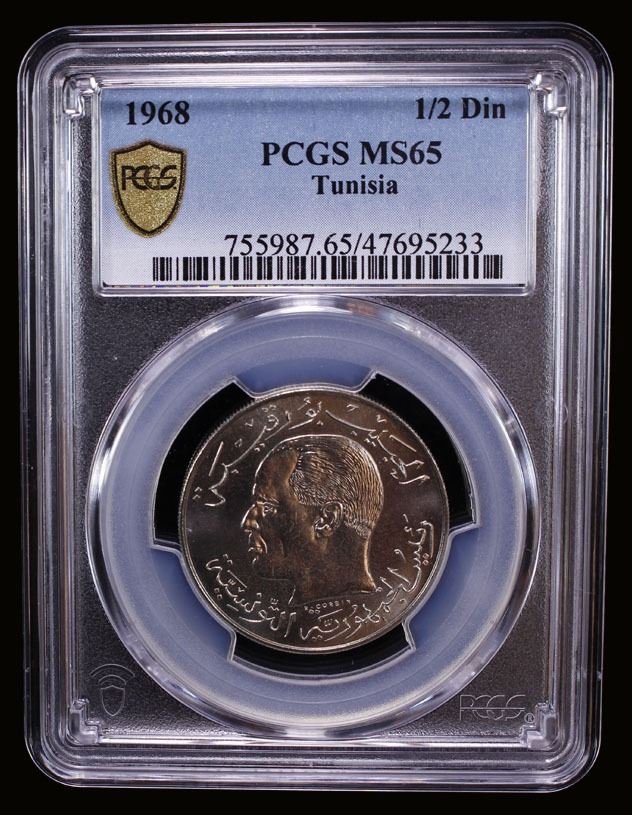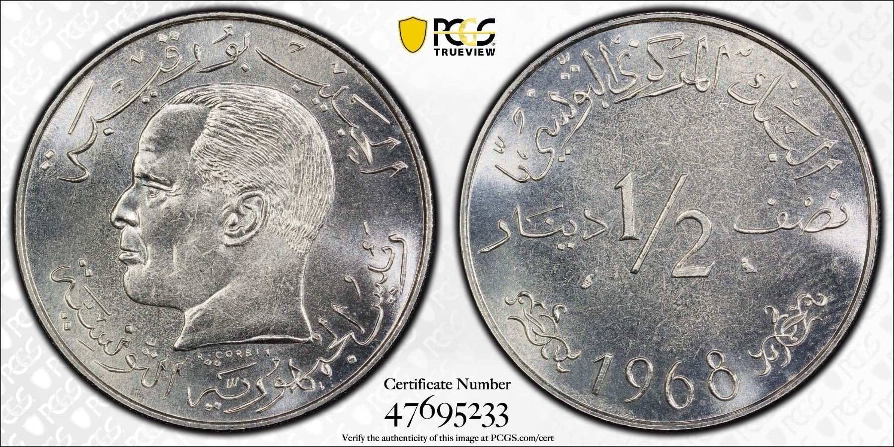 TUNISIA: Republic, 1/2 dinar, 1968, PCGS MS65