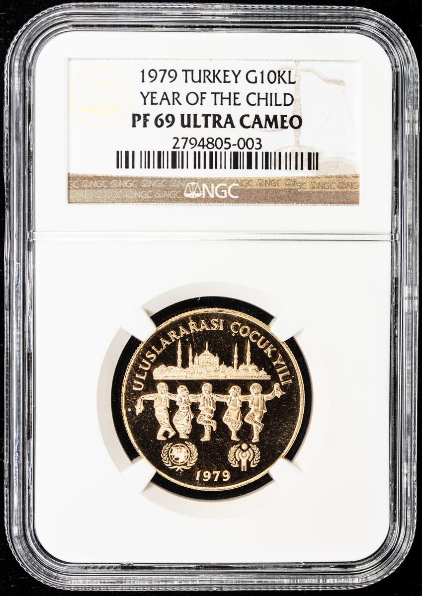 TURKEY: AV 10,000 lira, 1979, KM-933, UNICEF Year of the Child, NGC graded PF69 UC.
