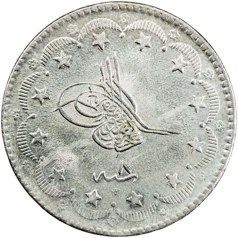 TURKEY: Abdul Aziz, 1861-1876, AR 20 kurush, Kostantiniye, AH1277 year 8, KM-693, struck from deteriorating dies, especially the obverse, About Unc.