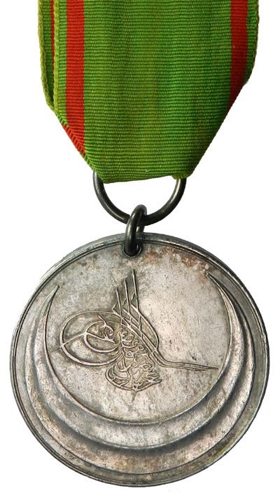 Although uprisings among the Greek inhabitants of the island of Crete had been occurring for years, an outright revolt began on May 14, 1866, when a group of Greek citizens demanded lower taxes and changes in the court system. Although their demands were met, Ottoman troops were mobilized immediately, expecting outright rebellion. This became a self-fulfilling prophecy, and fighting broke out between Cretan Greeks and Turkish solders. Thousands of Greek volunteers arrived on the island from the mainland, and the Greek government appealed to the Western powers to intervene on their behalf. Britain and Austria, however, were opposed to intervention for the time being. Thus, the Ottoman armies achieved one of their most uncompromised victories of the century, settling the affair in 1869. The Empire was able to retain Crete in some form for another 43 years. The original ribbon color of this medal is believed to have been solid red.