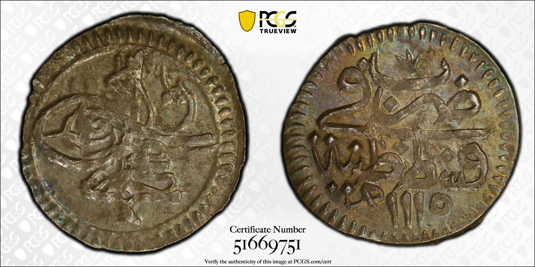 TURKEY: Ahmed III, 1703-1730, AR akçe, Kostantiniye, AH1115, PCGS MS63