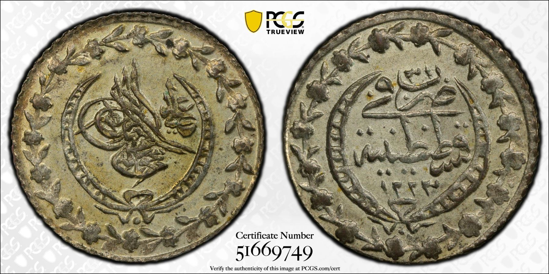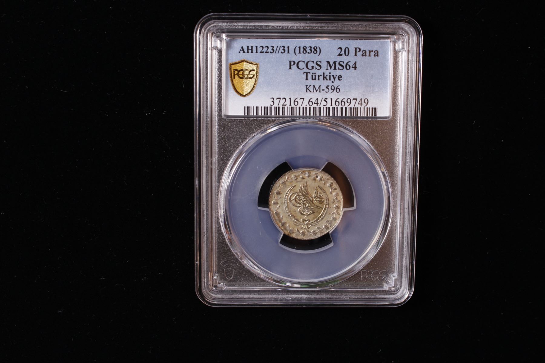 TURKEY: Mahmud II, 1808-1839, AR 20 para, Kostantiniye, AH1223 year 31, KM-596, a wonderful mint state example! PCGS graded MS64.