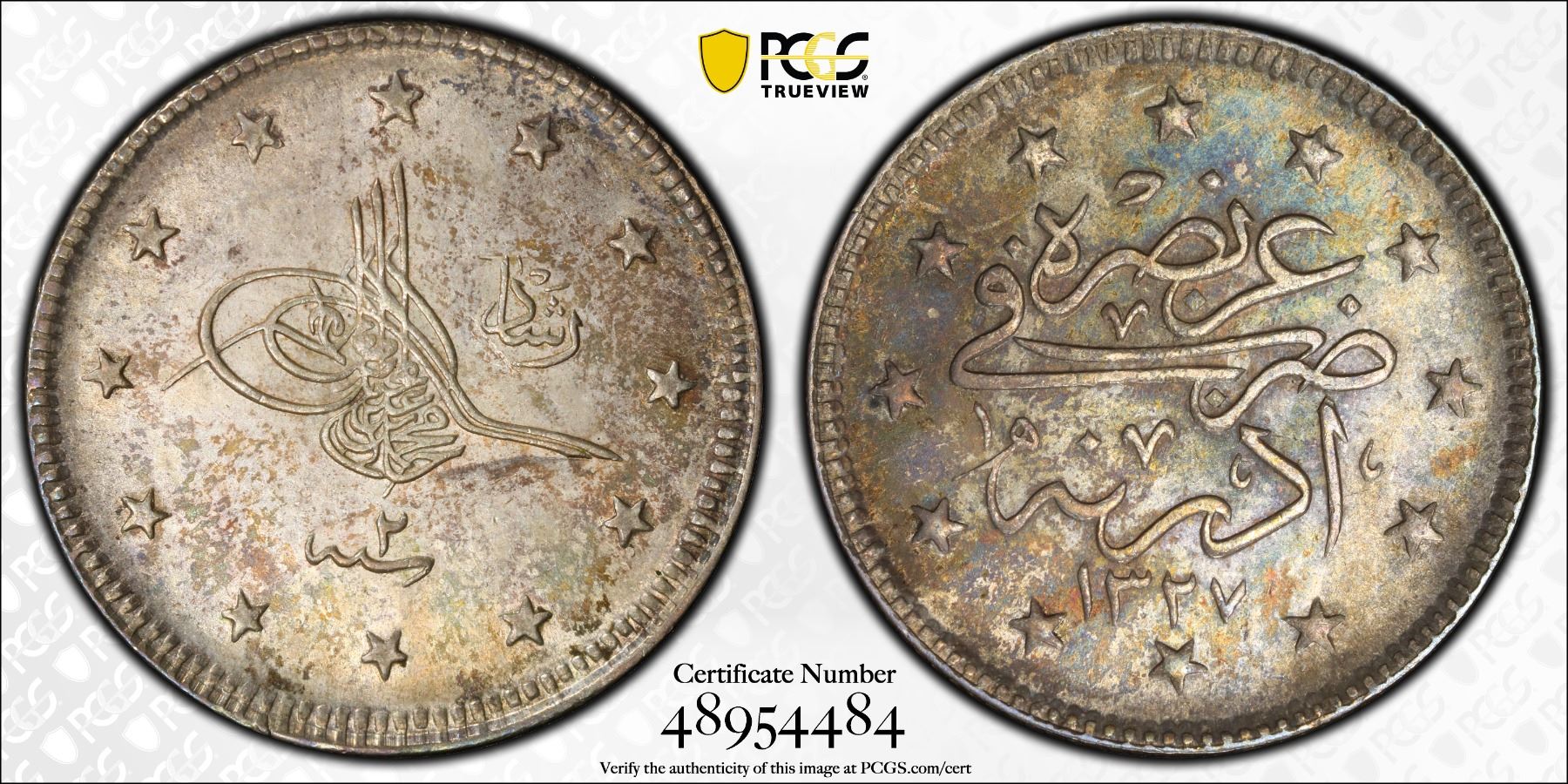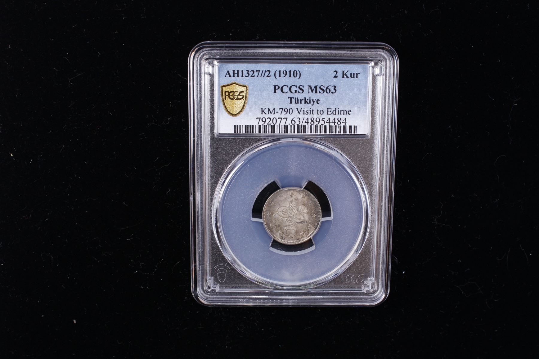 TURKEY: Mehmet V, 1909-1918, AR 2 kurush, Edirne, AH1327 year 2, PCGS MS63