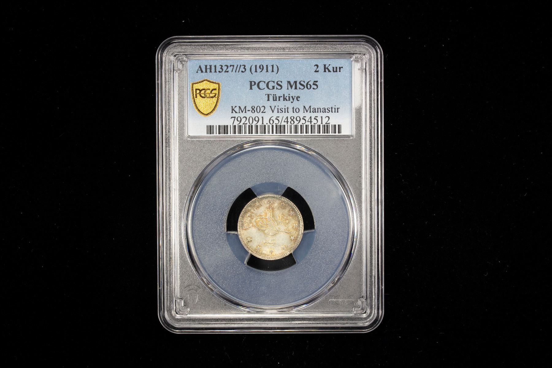 TURKEY: Mehmet V, 1909-1918, AR 2 kurush, Manastir, AH1327 year 3, KM-802, Y-48d, city visit issue, struck at the mint in Constantinople, a superb mint state example! PCGS graded MS65.