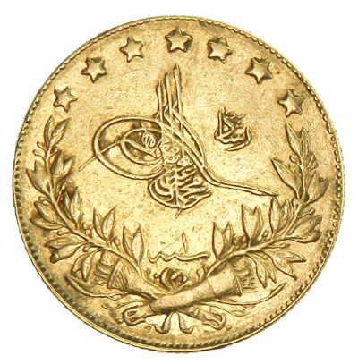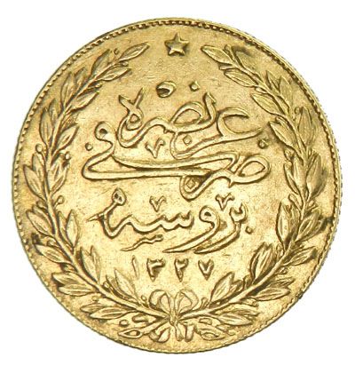 TURKEY: Mehmet V, 1909-1918, AV 100 kurush (7.18g), Bursa, AH1327 year 1