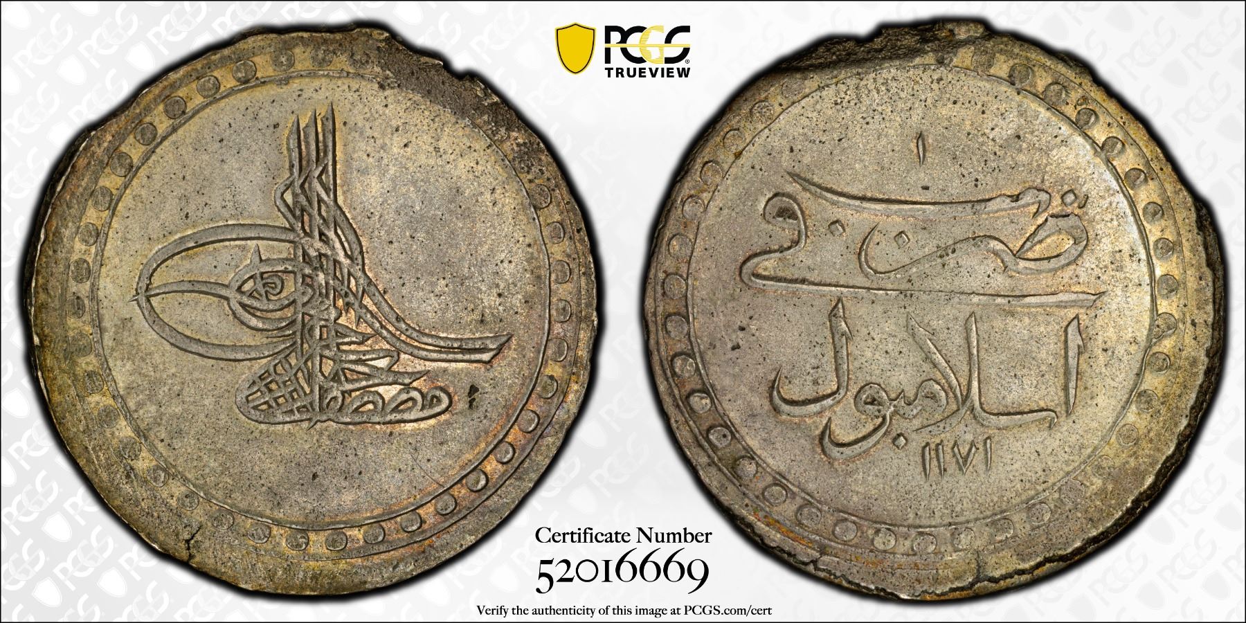 TURKEY: Mustafa III, 1757-1774, AR kurush, Islambul, AH1171 year 1, PCGS MS61