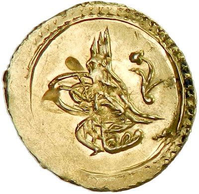 TURKEY: Mustafa IV, 1807-1808, AV ¼ altin (0.78g), Kostantiniye, AH1222 year 2, KM-543, lustrous About Unc.