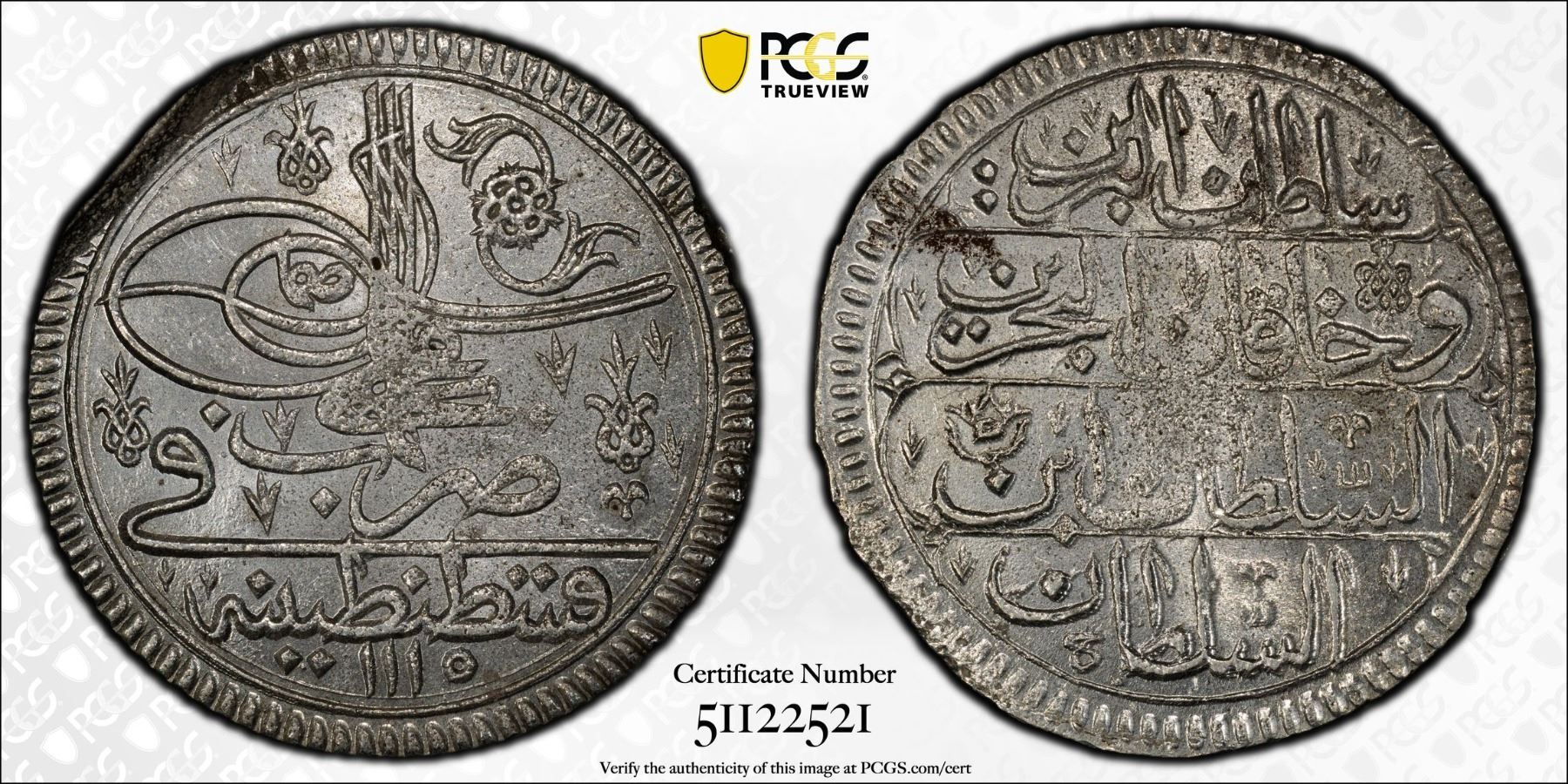 TURKEY (OTTOMAN EMPIRE): Ahmed III, 1703-1730, AR kurush, Kostantiniye, AH1115, PCGS MS64