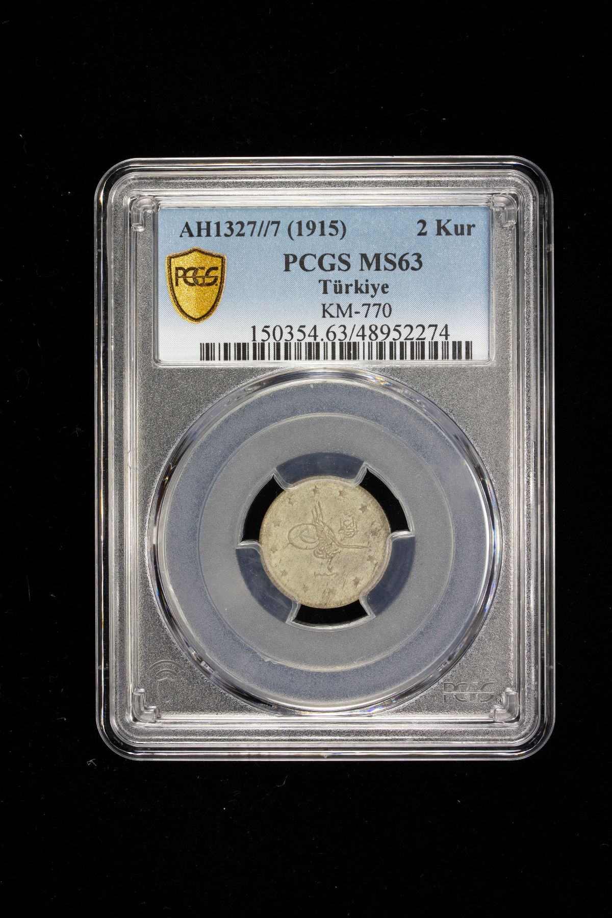 TURKEY (OTTOMAN): Mehmet V, 1909-1918, AR 2 kurush, Kostantiniye, AH1327 year 7, KM-770, PCGS graded MS63.