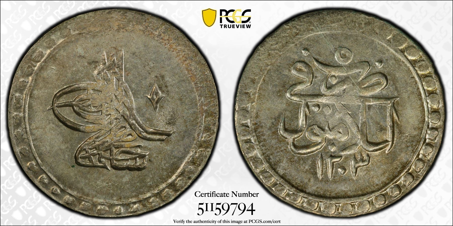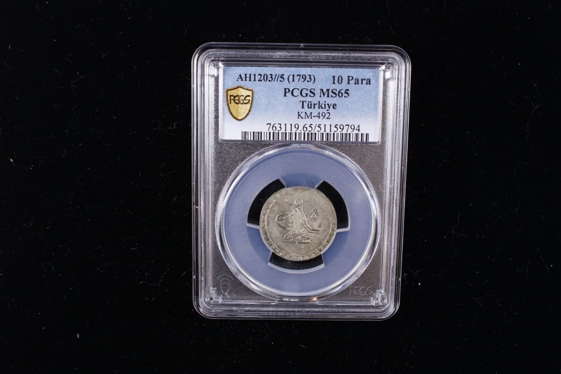 TURKEY: Selim III, 1789-1807, AR 10 para, Islambul, AH1203 year 5 (1793), KM-492, a superb example, PCGS graded MS65.