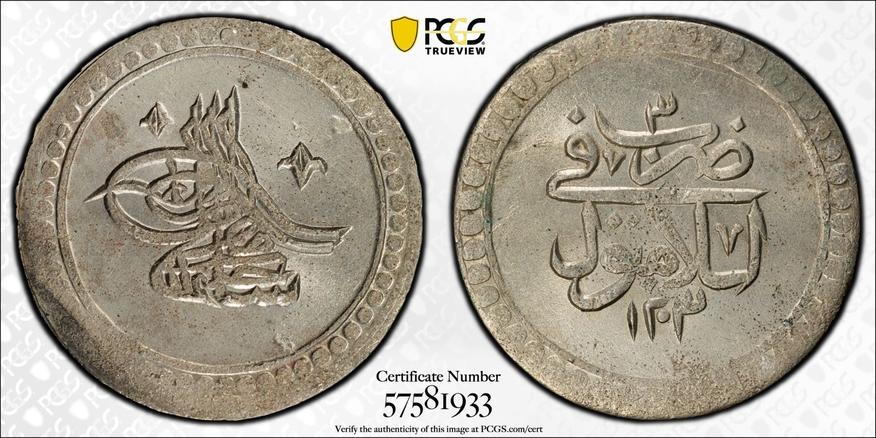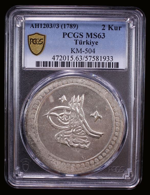 TURKEY: Selim III, 1789-1807, AR 2 kurush, Islambul, AH1203 year 3, PCGS MS63