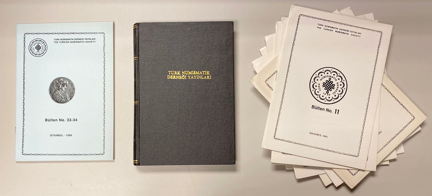 Turkish Numismatic Society, Bultens, Türk Numismatik Dernegi No. 1-34, Istanbul, 1983-1996, first 10 volumes hard bound together, remainder softcover, set of 12 items.