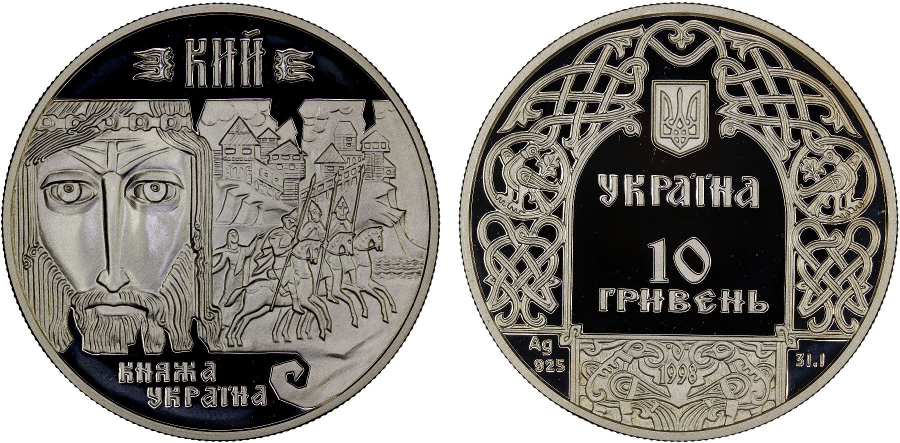UKRAINE: Republic, AR 10 hryven, 1998, KM-53, Princes of Ukraine Series - Prince Kyi, struck at Ukrainian mint, Kyiv, Proof. 5th-beginning of 6th centuries.