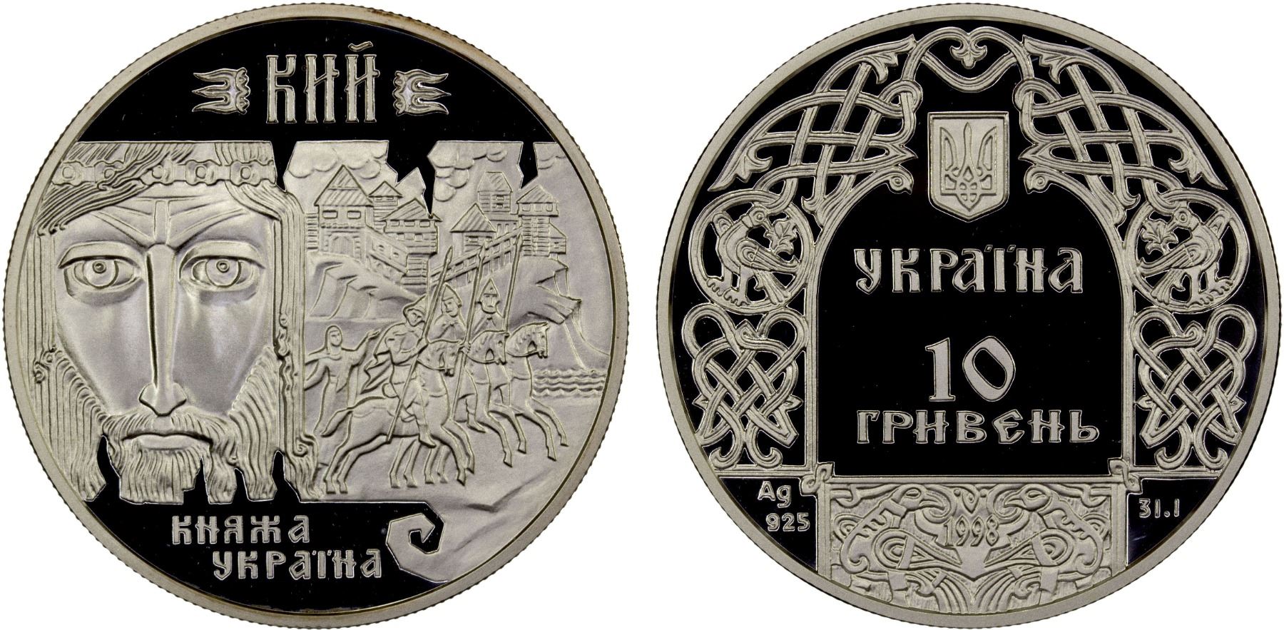 UKRAINE: Republic, AR 10 hryven, 1998, KM-53, Princes of Ukraine Series - Prince Kyi, struck at Ukrainian mint, Kyiv with COA of issue, Proof.