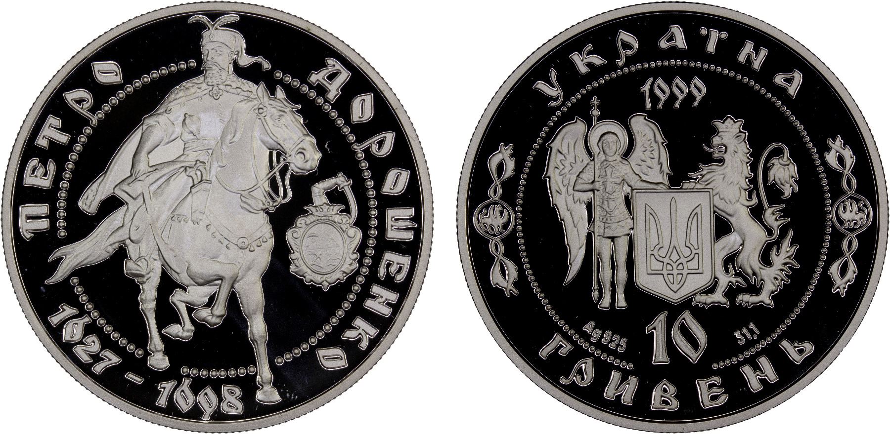 UKRAINE: Republic, AR 10 hryven, 1999, KM-88, Heroes of Cossack Age Series - Petro Doroshenko, struck at the Uranian mint, Kyiv with COA of issue, Proof. Petro Dorofiiovych Doroshenko (1627-1698) was a Cossack political and military leader, Hetman of right-bank Ukraine (1665-1672) and a Russian voivode or military leader.
