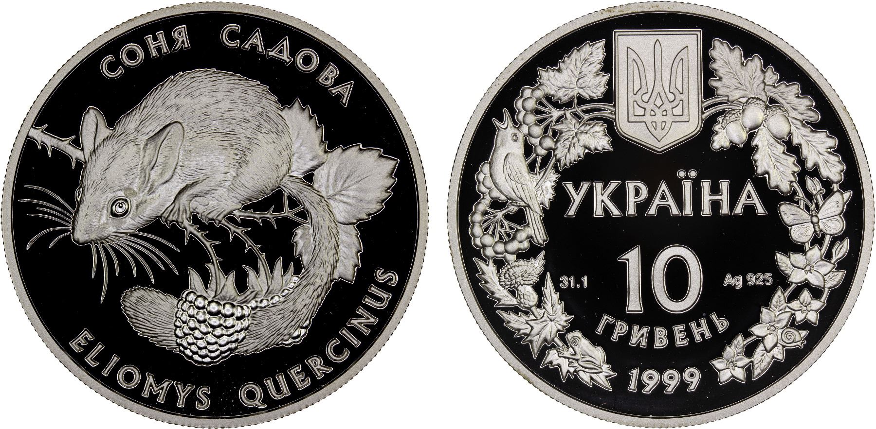 UKRAINE: Republic, AR 10 hryven, 1999, KM-89, Flora and Fauna of Ukraine Series - Garden Dormouse, struck at the Uranian mint, Kyiv with COA of issue, Proof. The garden dormouse (Eliomys quercinus) is a species of dormouse native to Europe.
