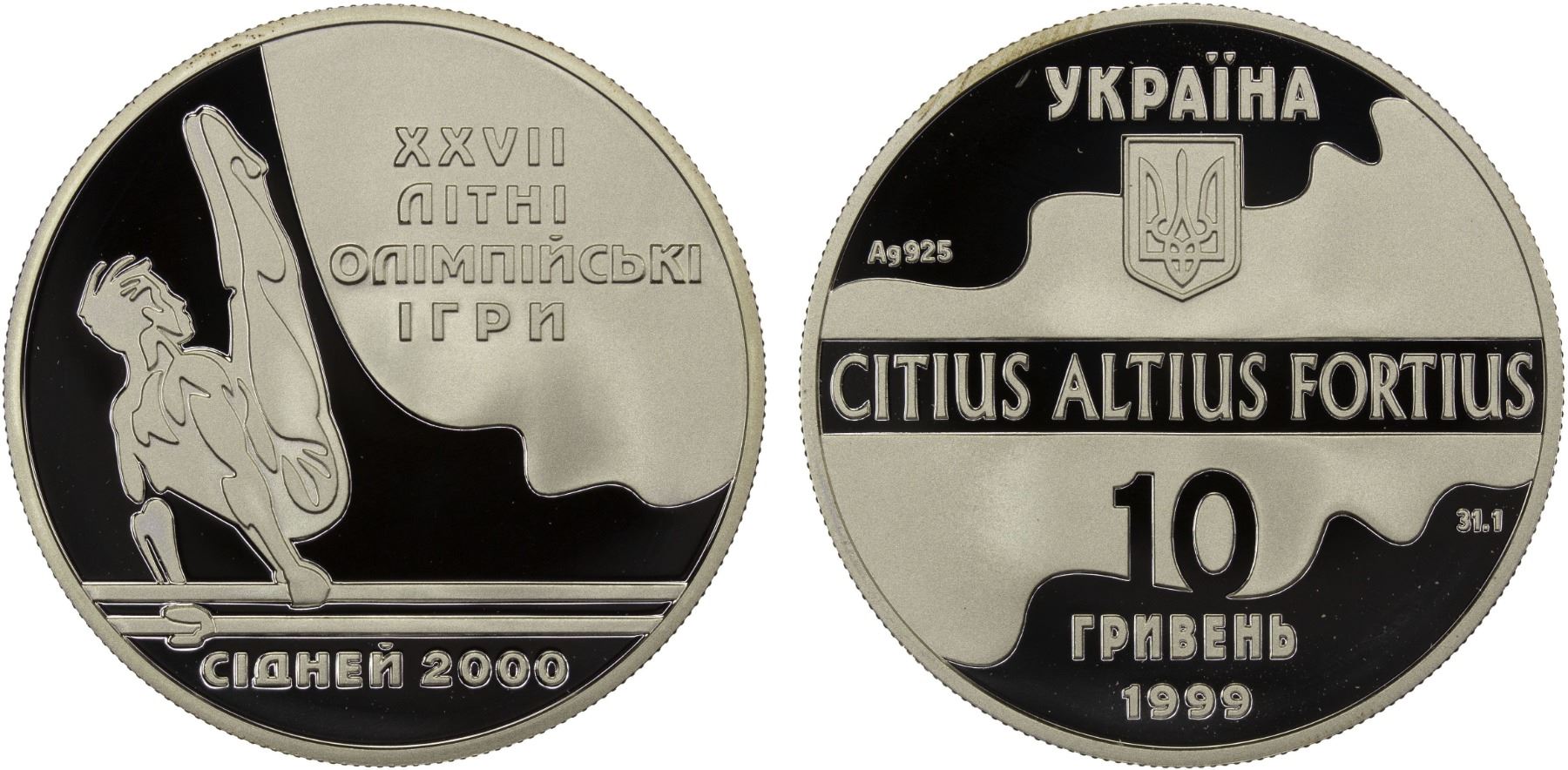 UKRAINE: Republic, AR 10 hryven, 1999, KM-117, Sydney Summer Olympic Games - Parallel Bars, struck at the Ukrainian mint, Kyiv with COA of issue, Proof.
