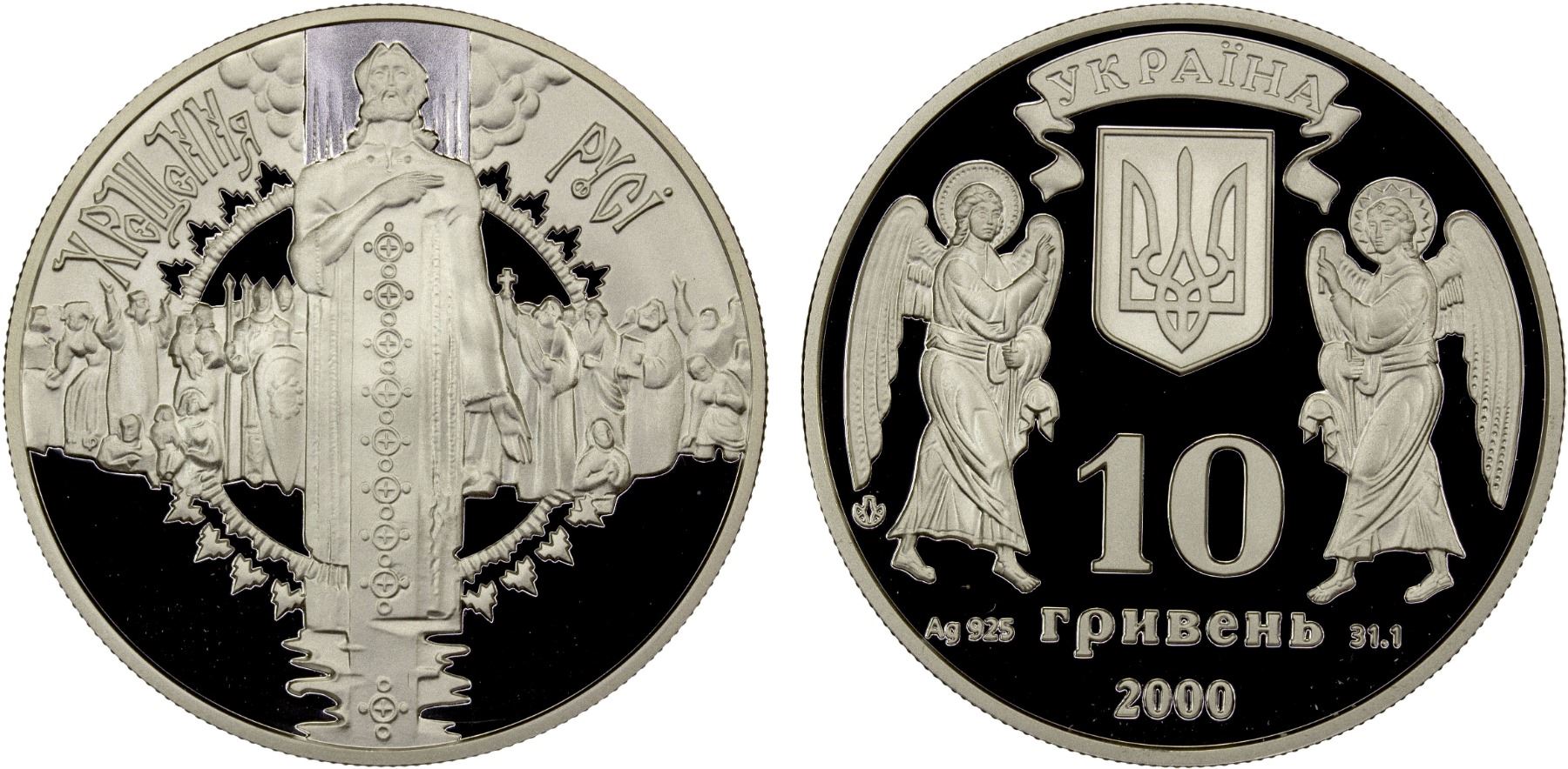 UKRAINE: Republic, AR 10 hryven, 2000, KM-109, 2000 Years of Christmas – Baptizing of Rus, struck at the Ukrainian mint, Kyiv, with COA of issue, Proof.