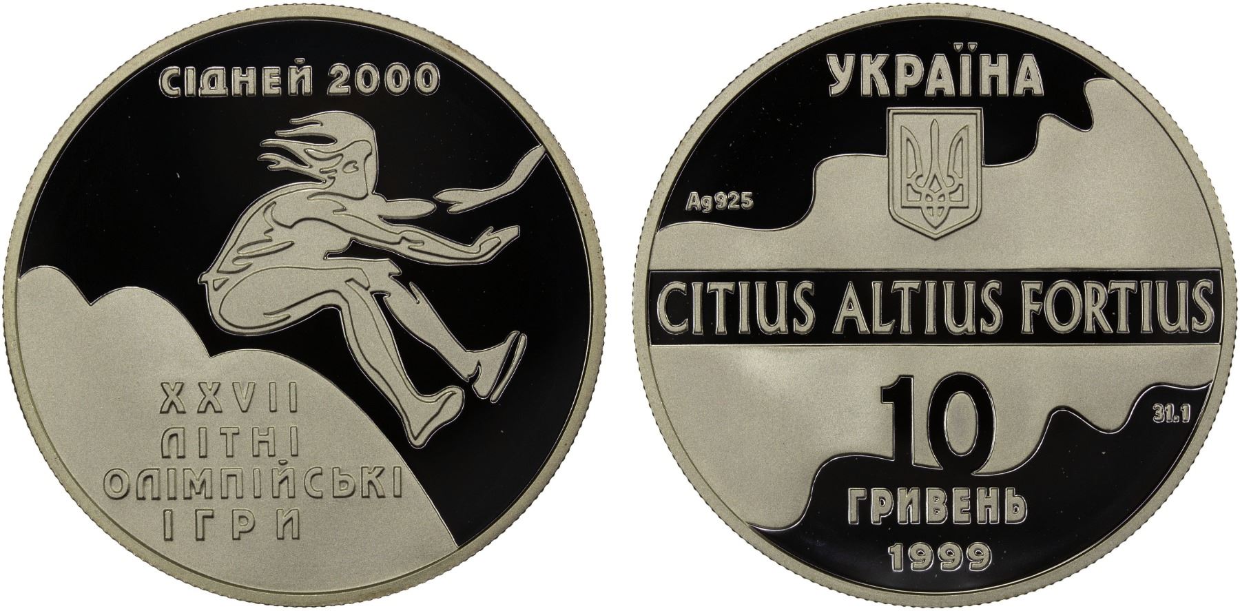 UKRAINE: Republic, AR 10 hryven, 2000, KM-116, Summer Olympic Games Sydney - Triple Jump, struck at the Ukrainian mint, Kyiv, Proof.