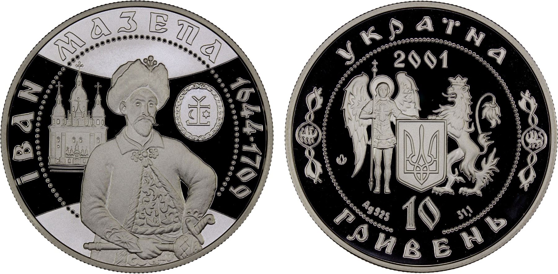 UKRAINE: Republic, AR 10 hryven, 2001, KM-113, Heroes of Cossack Age Series – Ivan Mazepa, struck at the Ukrainian mint, Kyiv, Proof.