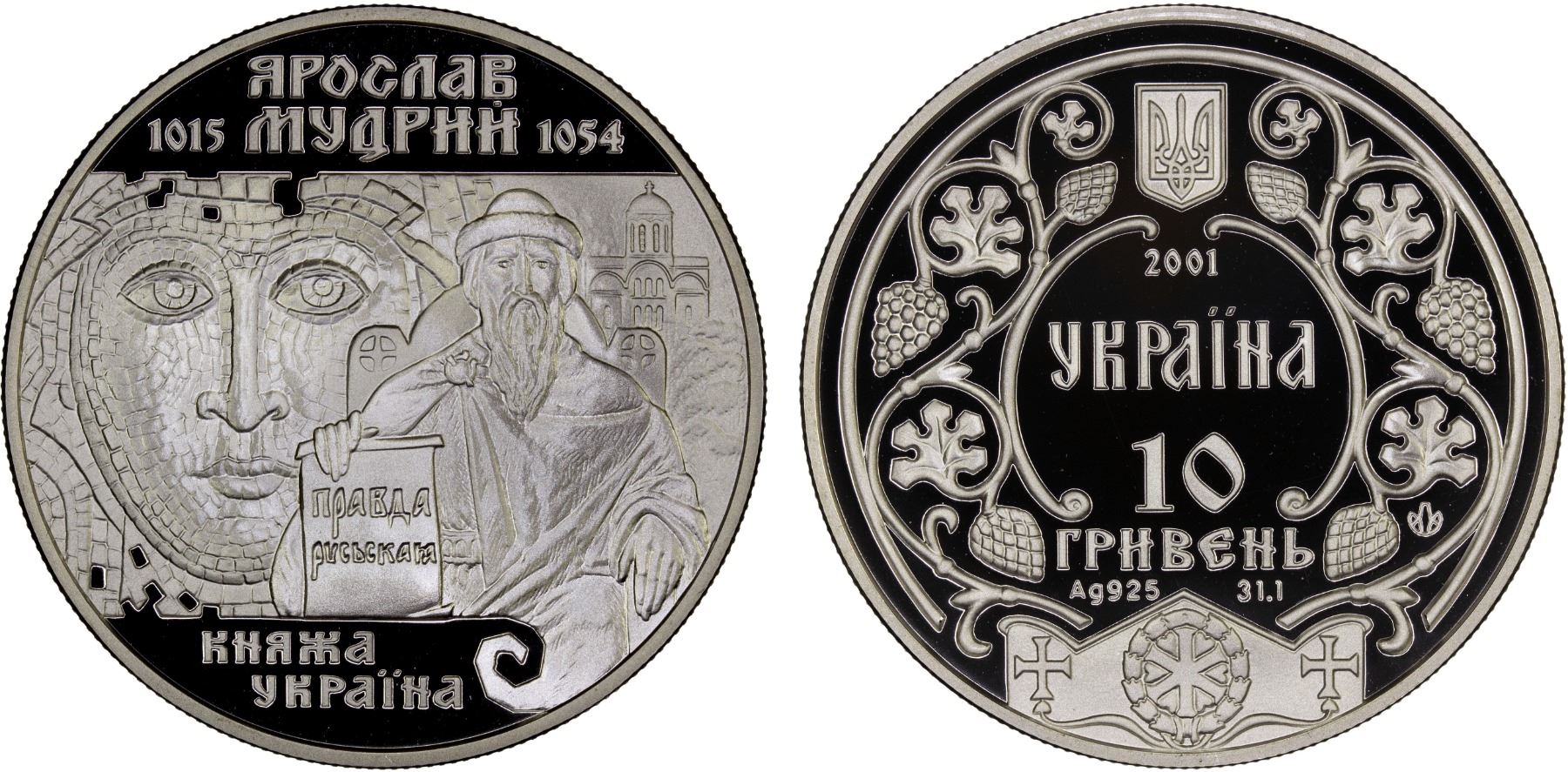 UKRAINE: Republic, AR 10 hryven, 2001, KM-114, Princes of Ukraine Series – Yaroslav the Wise, struck at the Ukrainian mint, Kyiv, Proof.