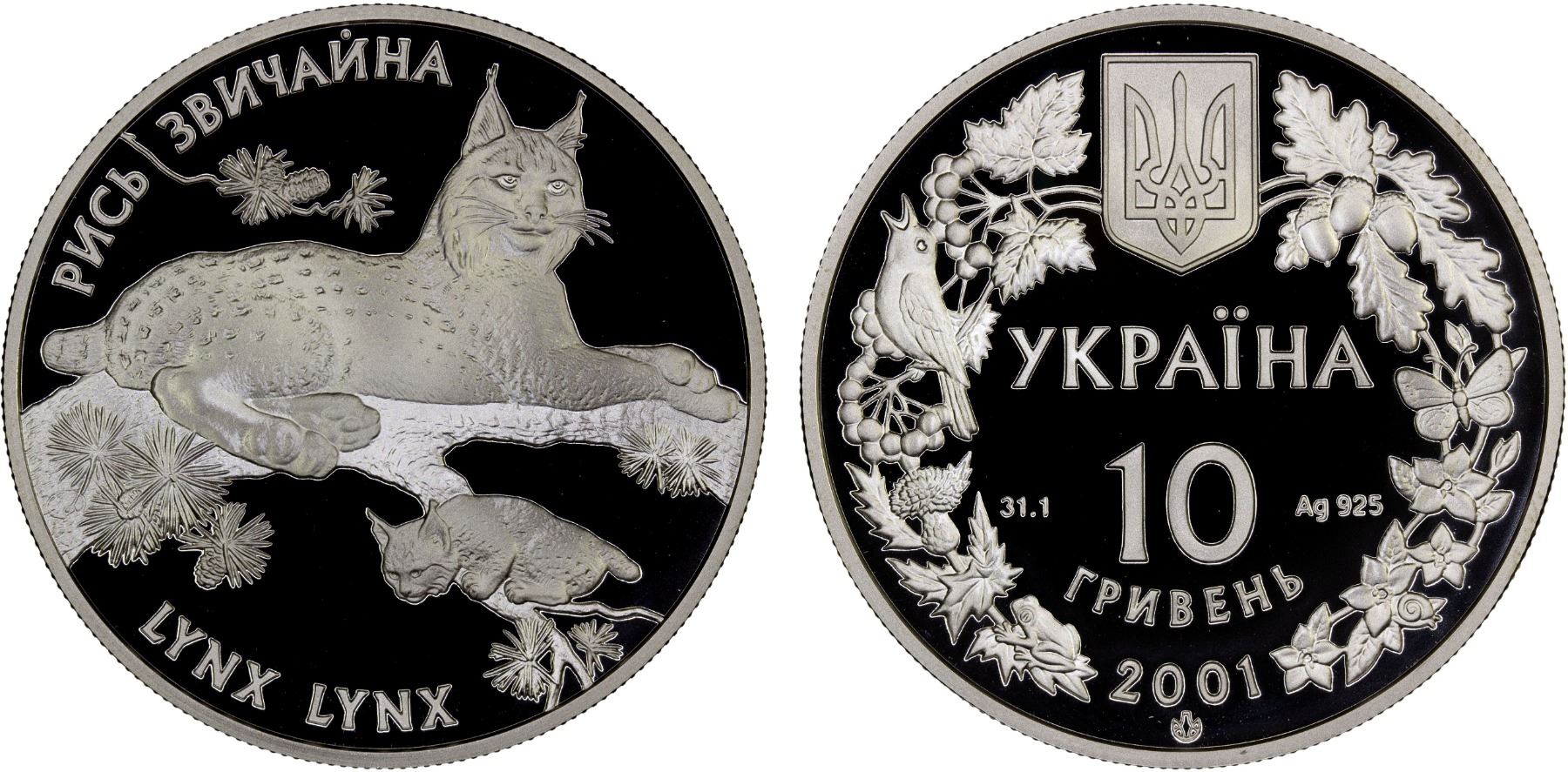 UKRAINE: Republic, AR 10 hryven, 2001, KM-115, Flora and Fauna Series – Eurasian lynx, struck at the Ukrainian mint, Kyiv, with COA of issue, Proof.
