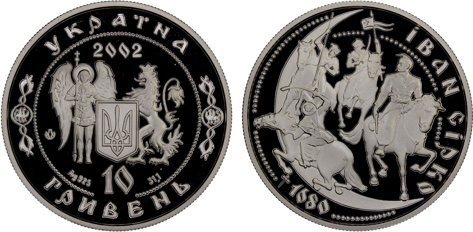 UKRAINE: Republic, AR 10 hryven, 2002, KM-145, Heroes of Cossack Age Series – Ivan Sirko, struck at the Ukrainian mint, Kyiv, with COA of issue, Proof.