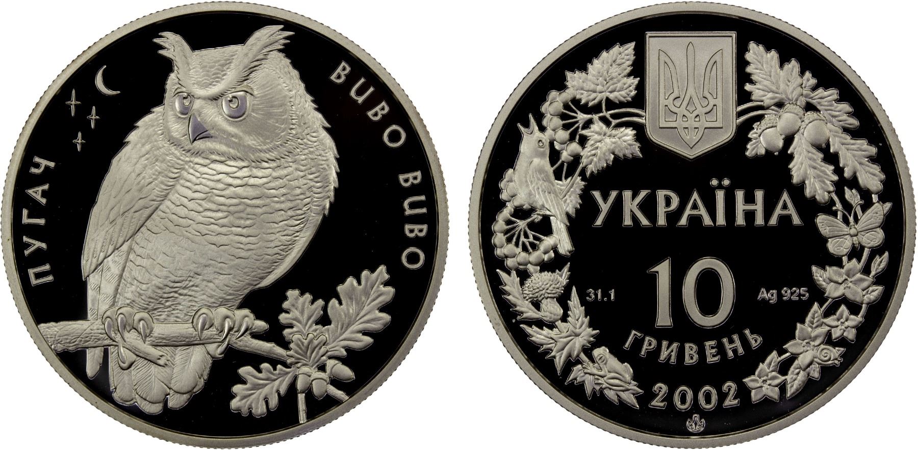 UKRAINE: Republic, AR 10 hryven, 2002, KM-229, Flora and Fauna Series – Eagle Owl (Bubo bubo), struck at the Ukrainian mint, Kyiv, with COA of issue, Proof.