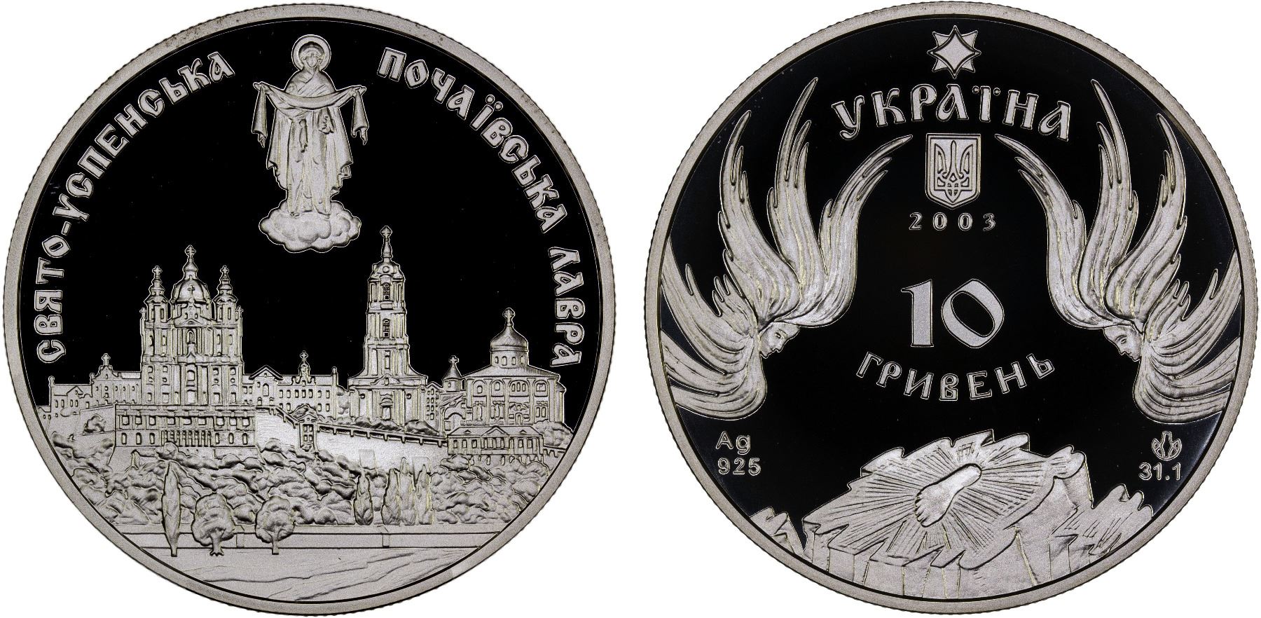UKRAINE: Republic, AR 10 hryven, 2003, KM-193, Architectural Monuments of Ukraine Series – Holy Dormition Pochaiv Lavra, struck at the Ukrainian mint, Kyiv, with COA of issue, Proof.