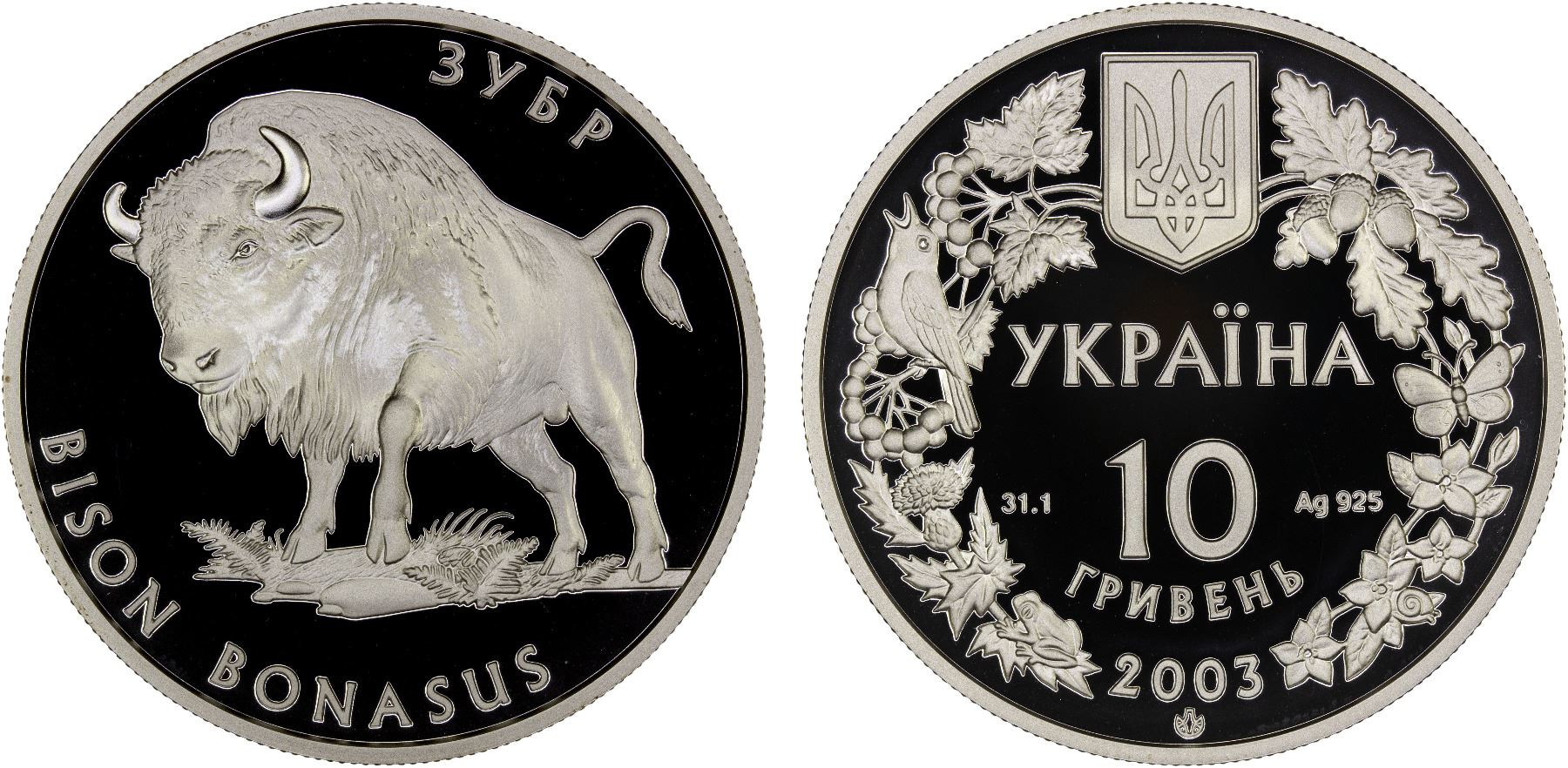 UKRAINE: Republic, AR 10 hryven, 2003, KM-198, Flora and Fauna Series – European Bison, struck at the Ukrainian mint, Kyiv, with COA of issue, Proof.
